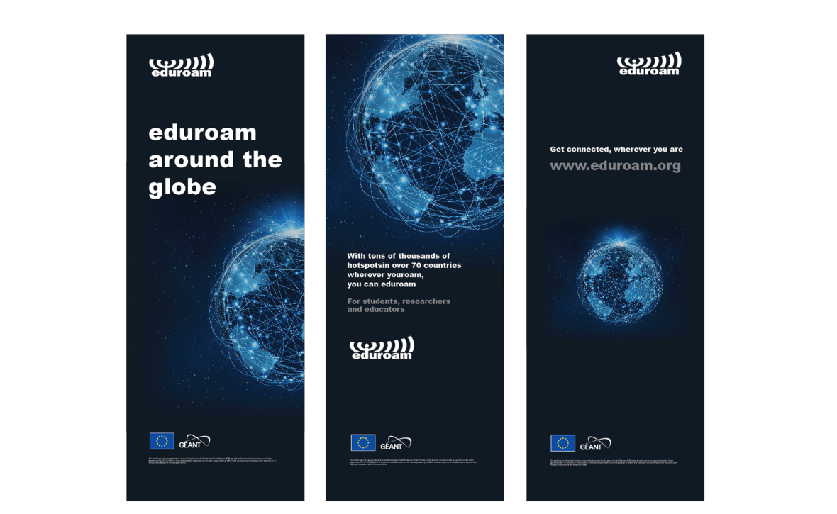 eduroam is the secure, world-wide roaming access service developed for the international research and education community. Here is a concept based around eduroam’s global connectivity that resulted in a set of three exhibition panels. They are intended to work in tandem with each other for greatest impact, but could also work independently.